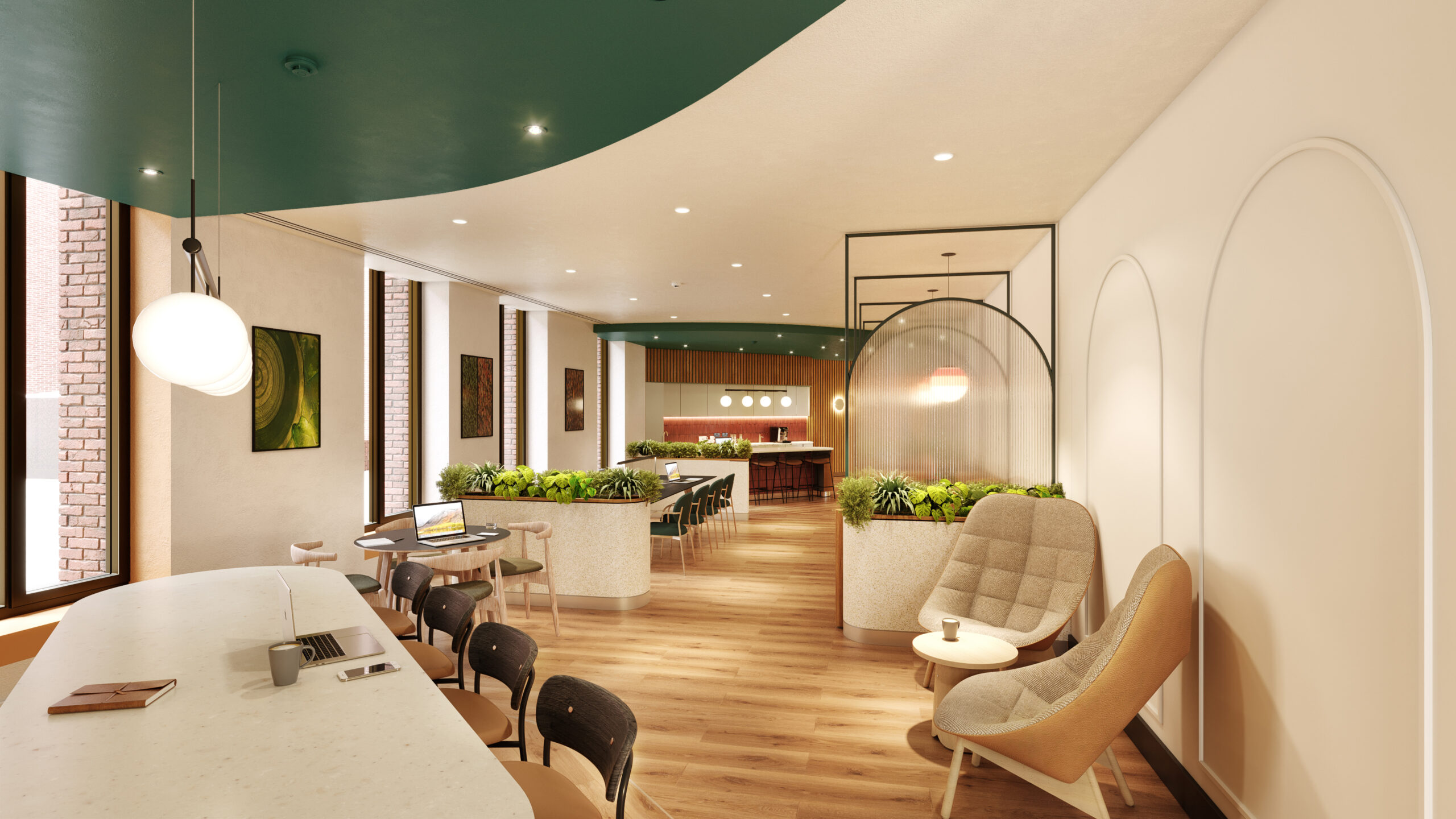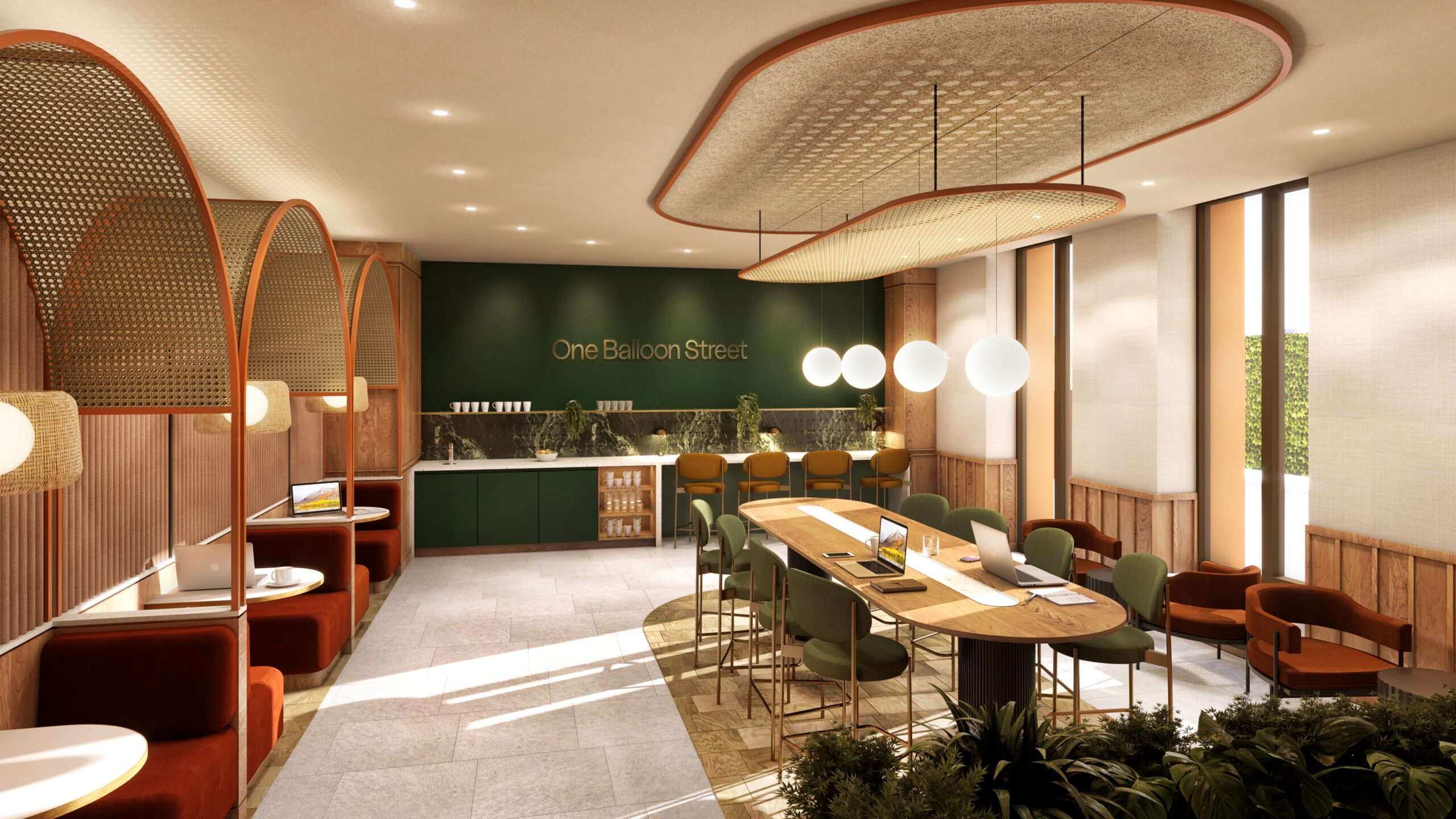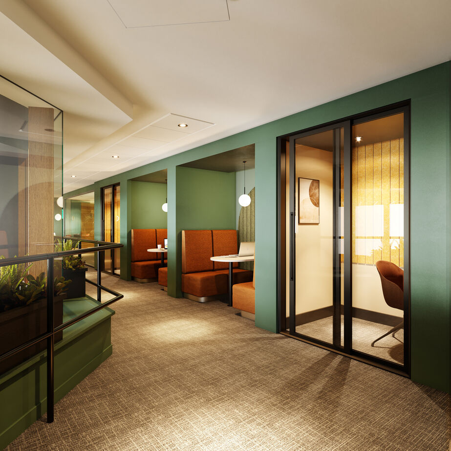 You’ll find private phone booths, different work zones, and dedicated spaces for collaboration. Enjoy unlimited barista-quality coffee, on-site showers and changing rooms, secure bike storage, and five modern meeting rooms. Plus, the building is designed with more space per person than the usual office, so everyone feels comfortable and at ease.